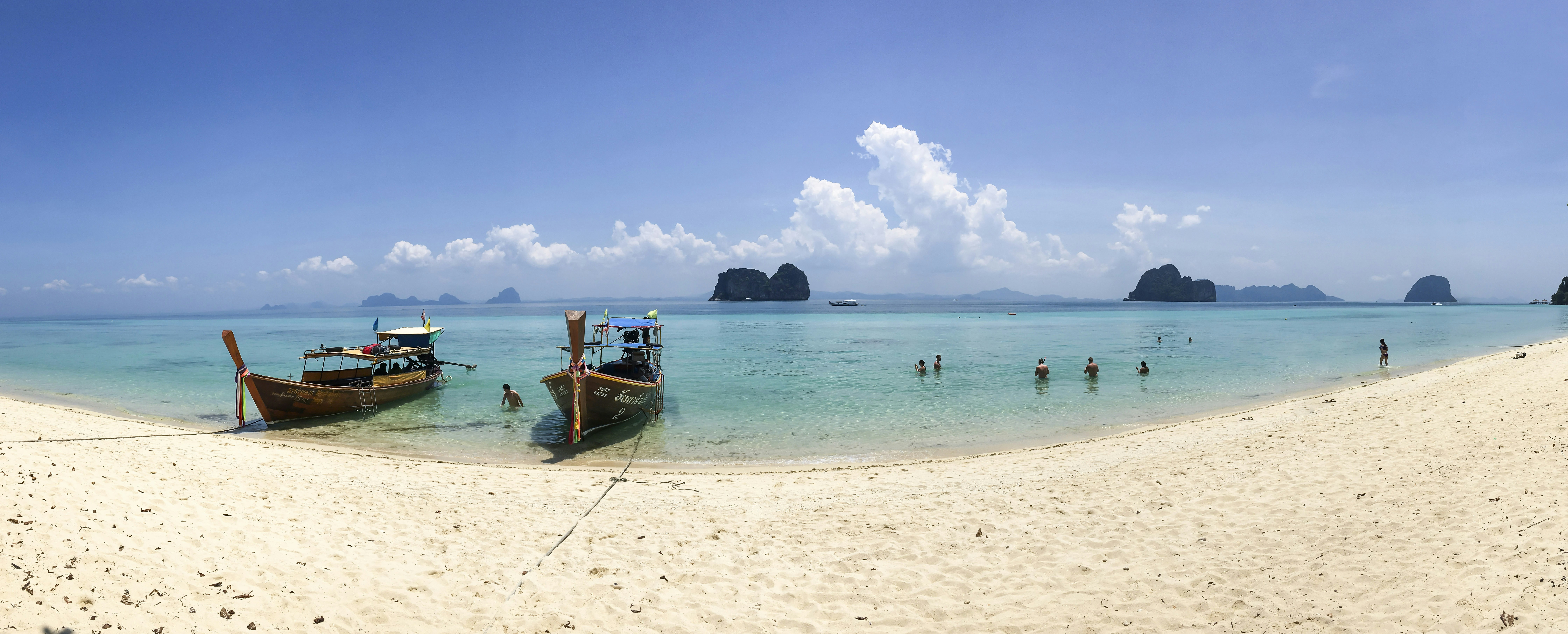 - People On Beach Beside Two Brown Boats During Daytime ... : Stay On Brand With Custom Fonts.